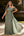 Corsetto a capezza abito da cerimonia lungo da sirena verde chiaro con perline e fessura