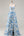 Abito da cerimonia lungo a livelli bianco e blu con fascia basca laterale e spacco