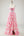 Vestito lungo rosa senza spalline in chiffon con fessura e dettagli drappeggiati