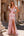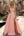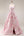 Corsetto rosa con linea A e perline in abito lungo da raso con fessura