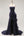 Nero in rilievo sirena spaghetti cinghie strass lato fiocco lungo abito da ballo con fessura