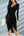 Abito da sera aderente in velluto nero incrociato con scollo a V e lunghezza midi