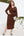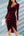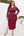 Abito da lavoro aderente bordeaux con scollo a V e maniche lunghe taglie forti con spacco