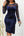 Splendido tubino fuori dalla spalla blu Vestito corto di ritorno a casa con piuma
