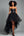 Spaghetti Straps Nero Alto Basso Arruffato Abito Lungo Formale
