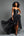Abito formale lungo con spalline sottili a trapezio nero con volant