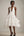 A Line Abito Bianco Nero A Pois con Maniche a Sbuffo