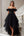 Abito formale in tulle nero con spalline scoperte e volant