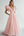 Abito formale lungo con scollo a V a linea A rosa con volant