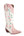 Bianco ricamato ginocchio alto ampio polpaccio tacco grosso stivali da cowgirl