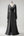 Sirena nera Spaghetti Straps arruffato fiocco indietro raso lungo abito da damigella d'onore