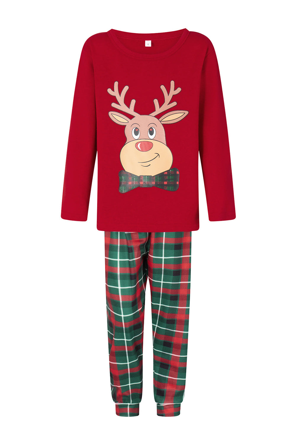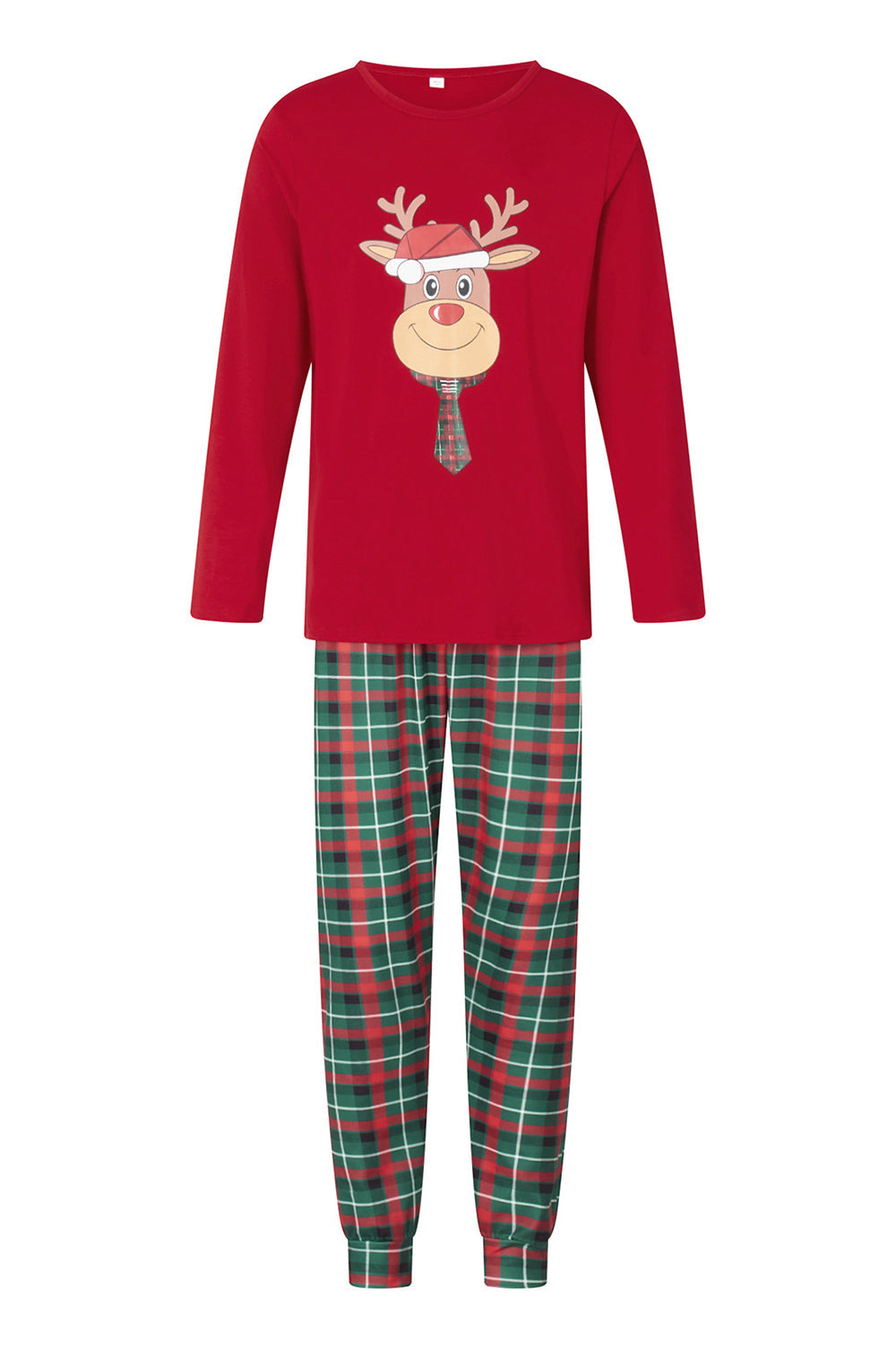 Set pigiama coordinato per famiglia di Natale a quadri con stampa animale rosso