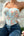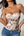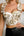 Top corsetto stampato in pizzo bianco con maniche a sbuffo