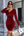 Abito corto da festa in velluto con scollo a V bordeaux