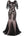 Abito lungo anni '20 con scollo a V con paillettes e scollo a V nero con frange