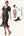 Abito nero dorato paillettes aderente con frange anni 1920 con set di accessori da 5 pezzi