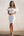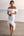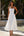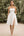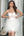 tubino monopetto stringato abito bianco con maniche a sbuffo