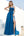 Un abito da cerimonia lungo blu con scollo a V con schiena aperta