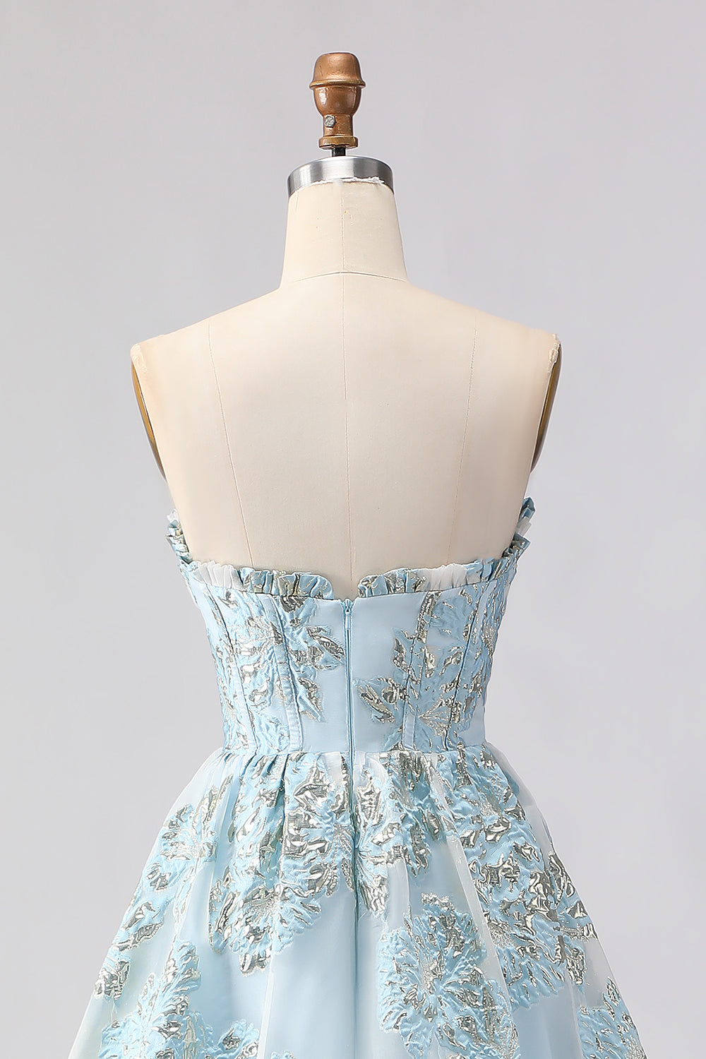 Vestito da Cerimonia lungo A Line Corset Azzurro Chiaro con fessura