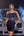Scintillante aderente scollo quadrato mini abito blu scuro da laurea con fessura