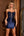 Sparkly blu scuro Square Neck Aderente Mini Abito Da Laurea con fessura