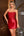 Rosso Scintillante Senza Spalline Corsetto Raso Abito Da Laurea Corto Aderente Con Perline