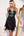 Abito da cocktail corto con paillettes con frange nere verdi scintillanti
