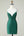 Abito da ritorno a casa a tubino verde scuro con spalle scoperte e applicazioni