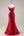 Abito da cerimonia lungo rosso modello sirena con corsetto e spalline sottili