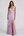 Corsetto rosa con linea A e perline in abito lungo da raso con fessura