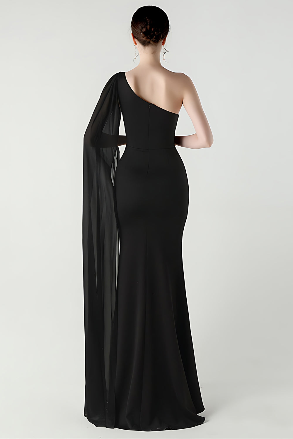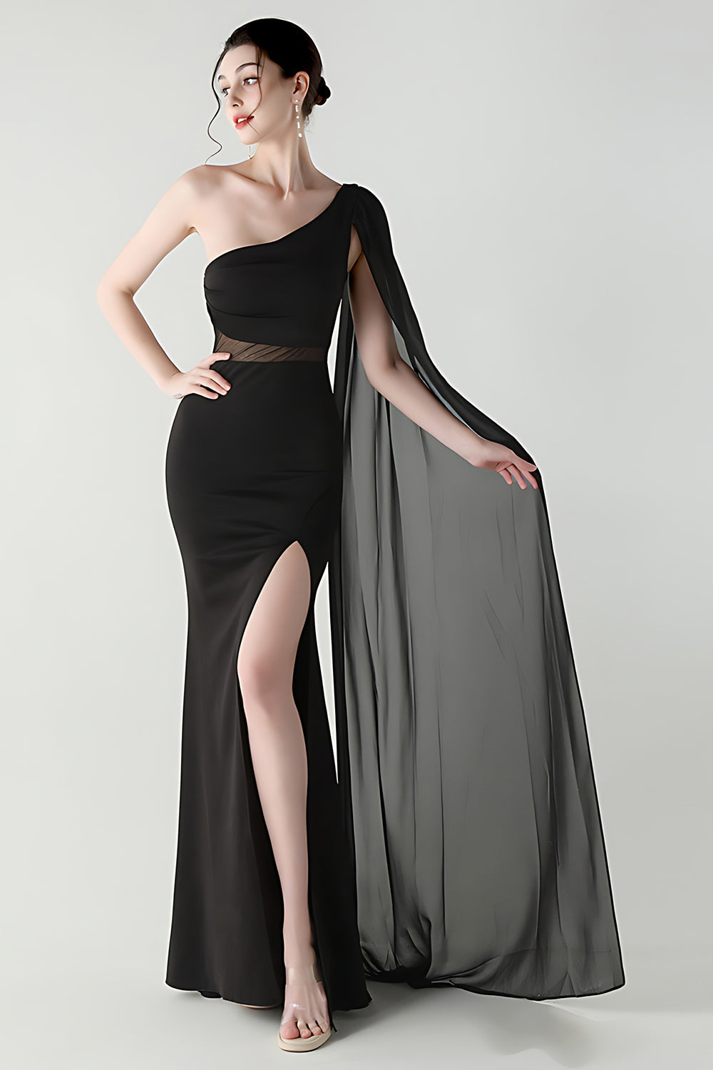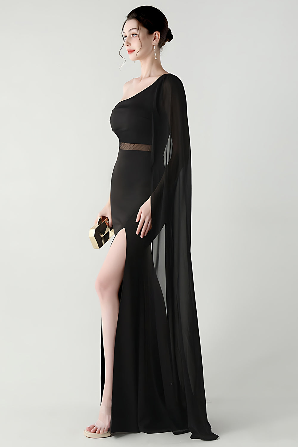 Festone Sirena Nera con una sola spalla Abito Formale Lungo con fessura