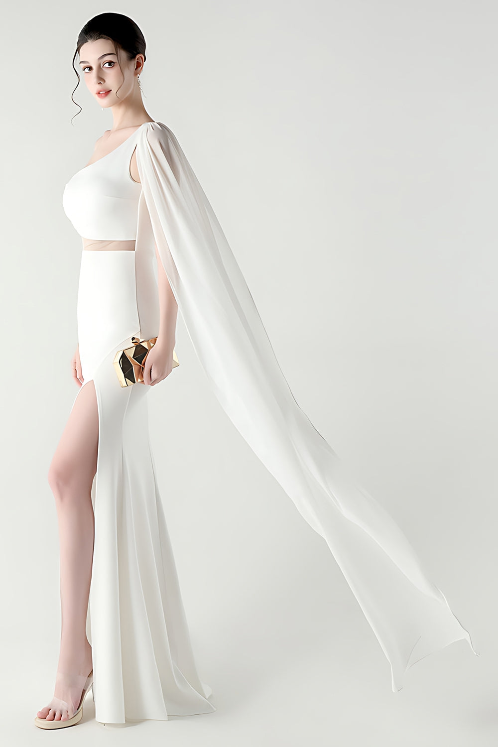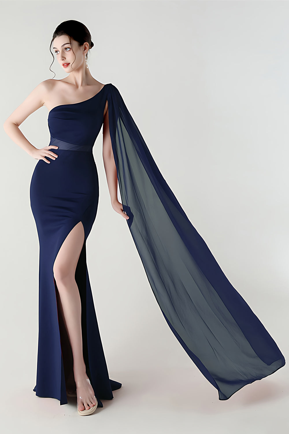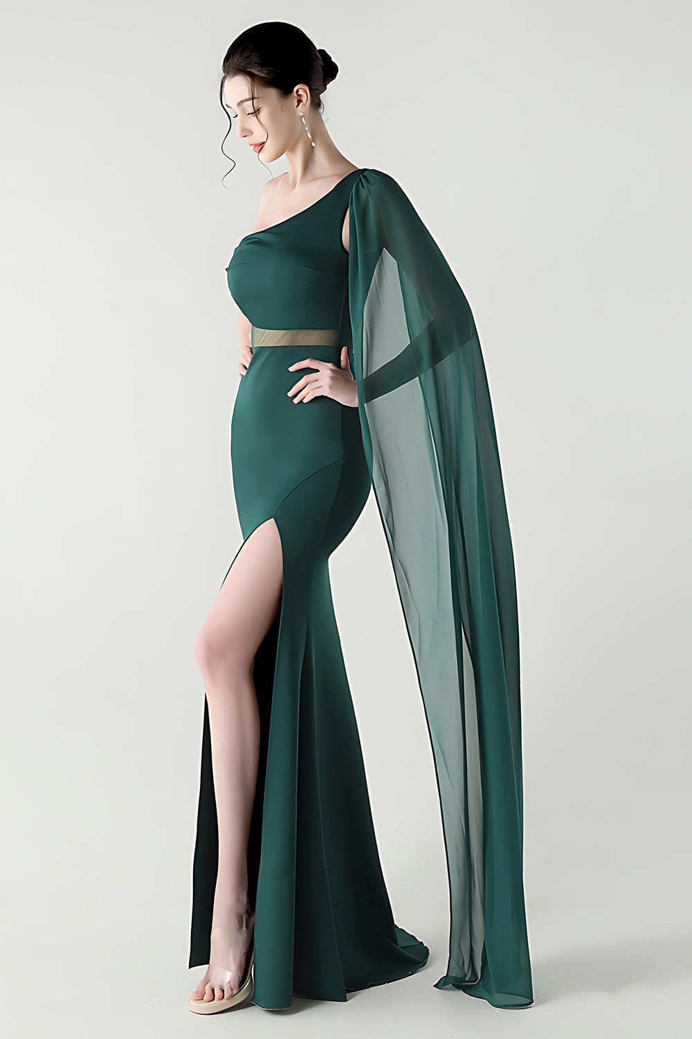 Festone Sirena Nera con una sola spalla Abito Formale Lungo con fessura