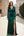 Abito lungo da sagoma in raso verde scuro con scollo battuto