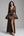Abito formale a maniche lunghe con guaina in raso caffè e pizzo