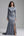 Abito formale a maniche lunghe in raso azzurro polveroso con strass