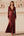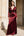 Abito lungo formale in raso di raso borgogna con scollo a V