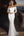 Abito da sposa increspato con scollo a V a sirena bianca con applique