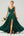 Abito da damigella d'onore lungo verde scuro con spalline sottili a trapezio di bellezza con fiori 3D