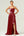 Abito da damigella d'onore lungo bordeaux con scollo all'americana e spacco