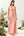 Una linea a V scollo fiore rosa stampato lungo abito da damigella d'onore con volant