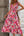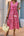 Abito estivo a trapezio floreale rosso con scollo a V e maniche lunghe