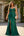 Abito da cerimonia lungo sirena verde scuro con paillettes e taglia scoperta