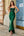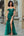 Abito lungo da ballo increspato in raso con paillettes verdi con fessura