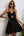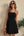 Abito da ritorno a casa corto nero con spalline linea A con applicazioni